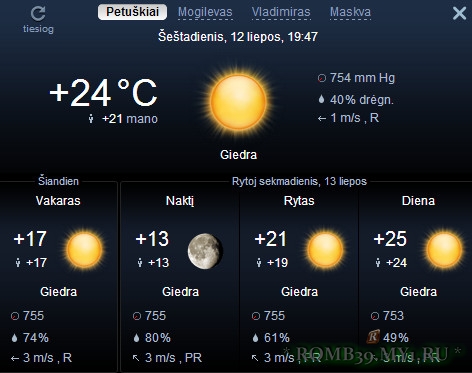 +13 °C / +24 °C Ясно